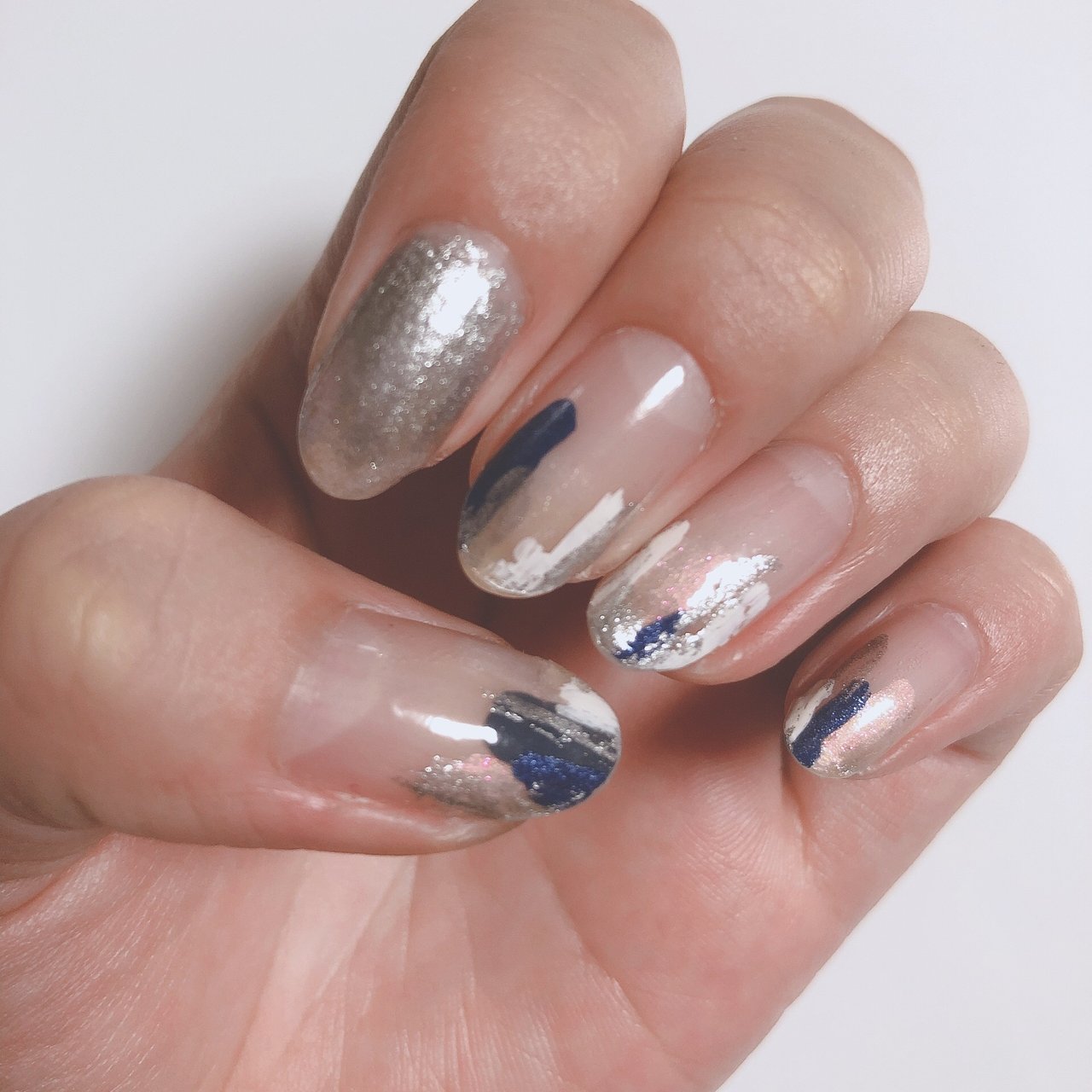 クリア ネイビー セルフネイルのネイルデザイン ネイルブック