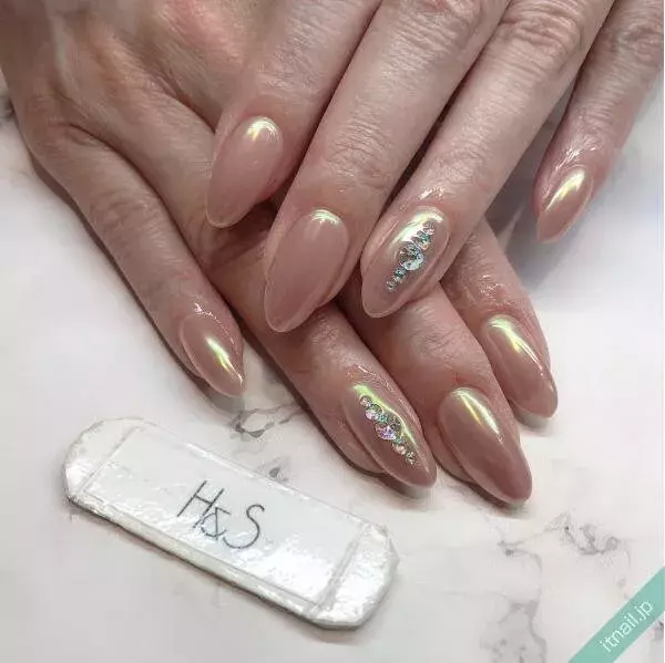 オーロラネイル シンプルネイル クリアネイル トレンドネイル クリアベースにオーロラパウダ Eight Eyelash Nail 渋谷本店所属 Hiyoのネイルデザイン ミニモ